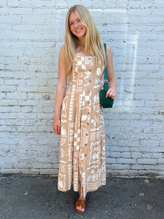 Fruit Doodle Square Neck Midi Dress