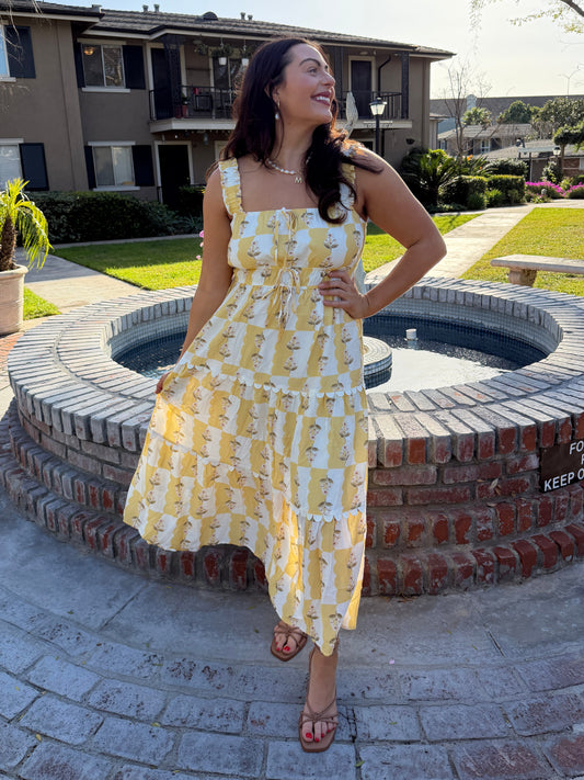 Smocked Drop Waist Checkered Dress