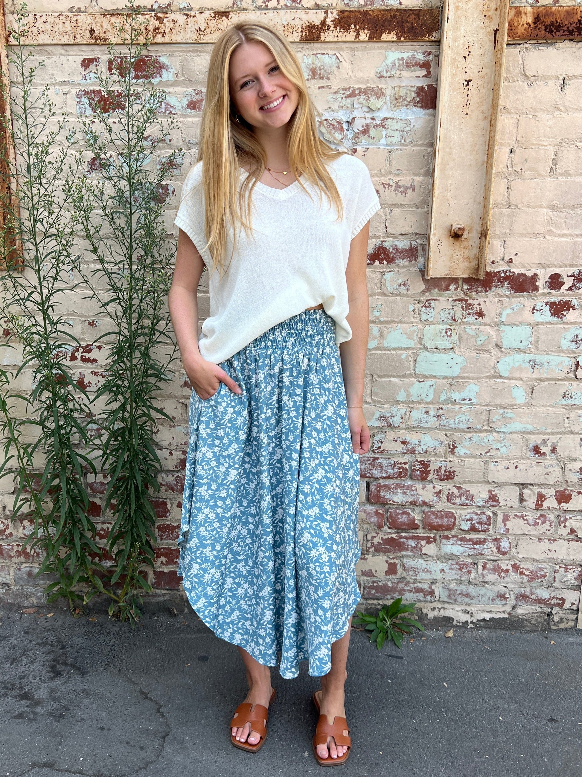 Our best-selling skirt is a customer favorite for a reason. Designed with a comfortable smocked waist and a rounded bottom hem, it flows effortlessly with every step. Made from a lightweight blend of 90% rayon and 10% nylon, it’s soft, breathable, and perfect for pairing with tanks, tees, or sweaters all year long.